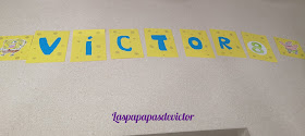 Hice las partes para los banderines y mi grande me ayudo a recortar y a pegar las letras de su nombre y demás
